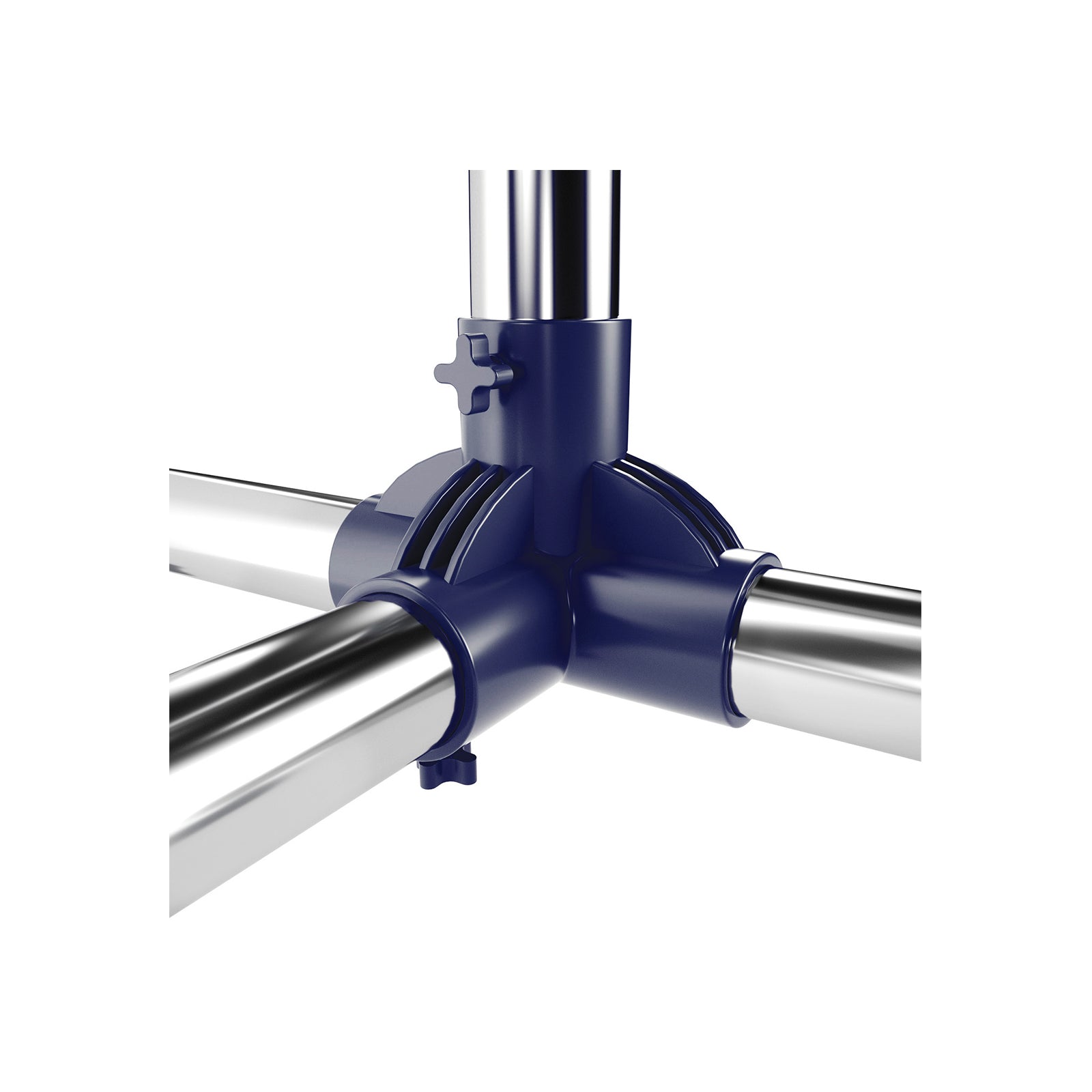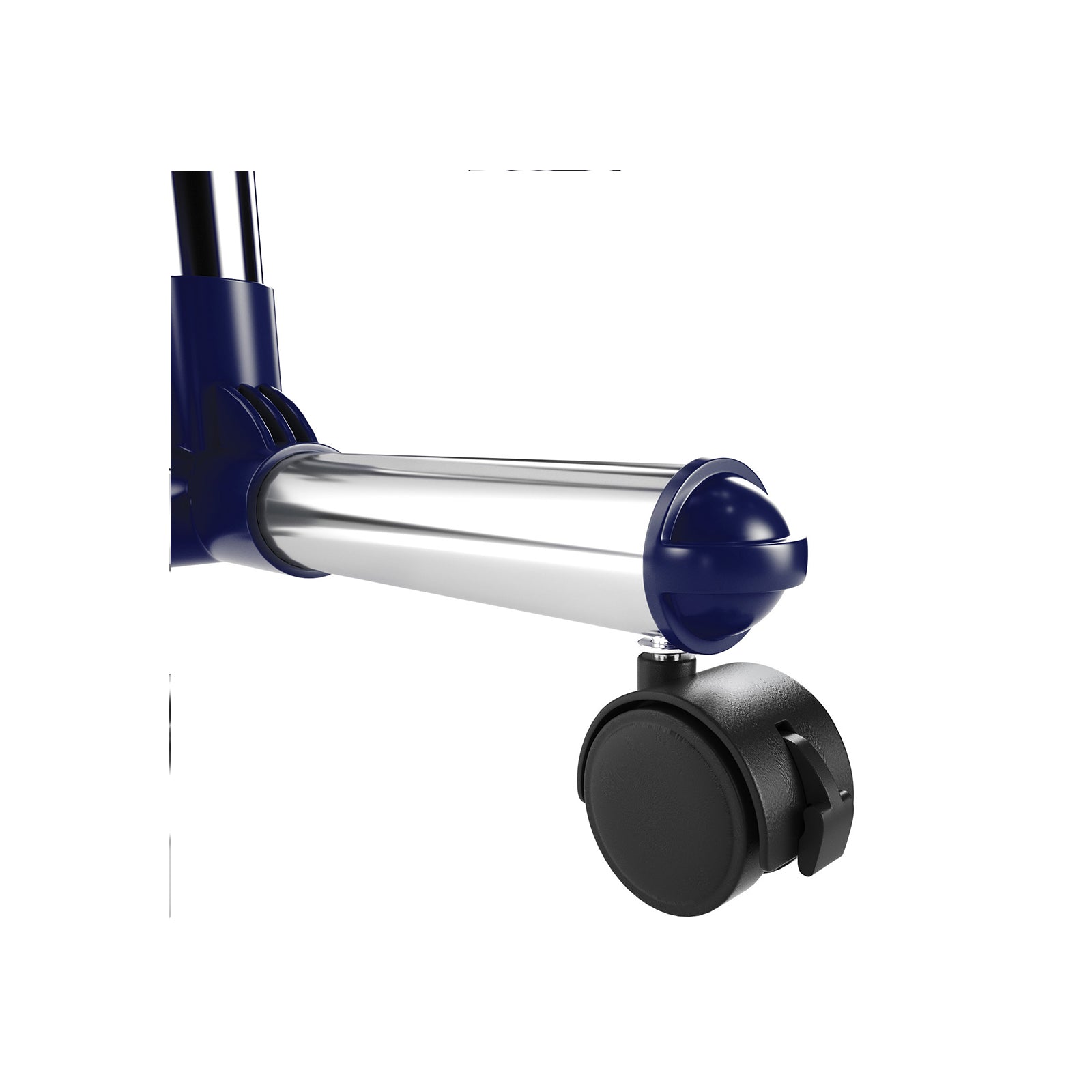 Das stabile Gestell besteht aus mit Edelstahl plattiertem Metallrohr. Die Stangen lassen sich in der Höhe von 87 bis 150 cm teleskopisch ausziehen. In der Länge ist der Ständer von 97 bis 165 cm verstellbar. Die 4 Rollen sind um 360° frei drehbar, 2 davon mit Bremsen, ist rutschsicher und gewährleistet mehr Stabilität.