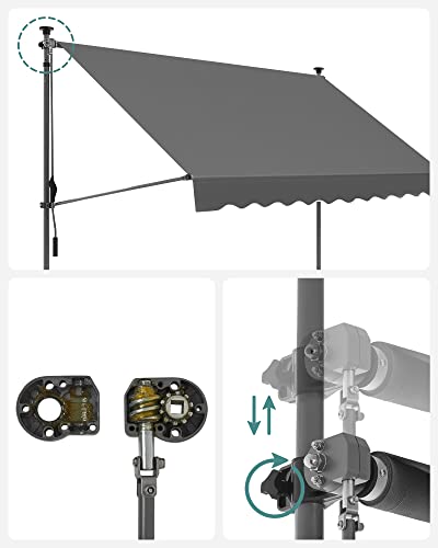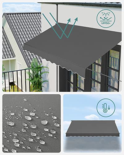 Verstellbar und geschützt: Der hochwertige Stoff der Markise schützt Sie nicht nur vor UV-Strahlen, sondern auch vor Regen. Mit der Kurbel können Sie den Winkel und die Breite der Markise verstellen, egal ob auf dem Balkon, der Terrasse oder im Freien, sie bietet Ihnen vollständigen Schutz.