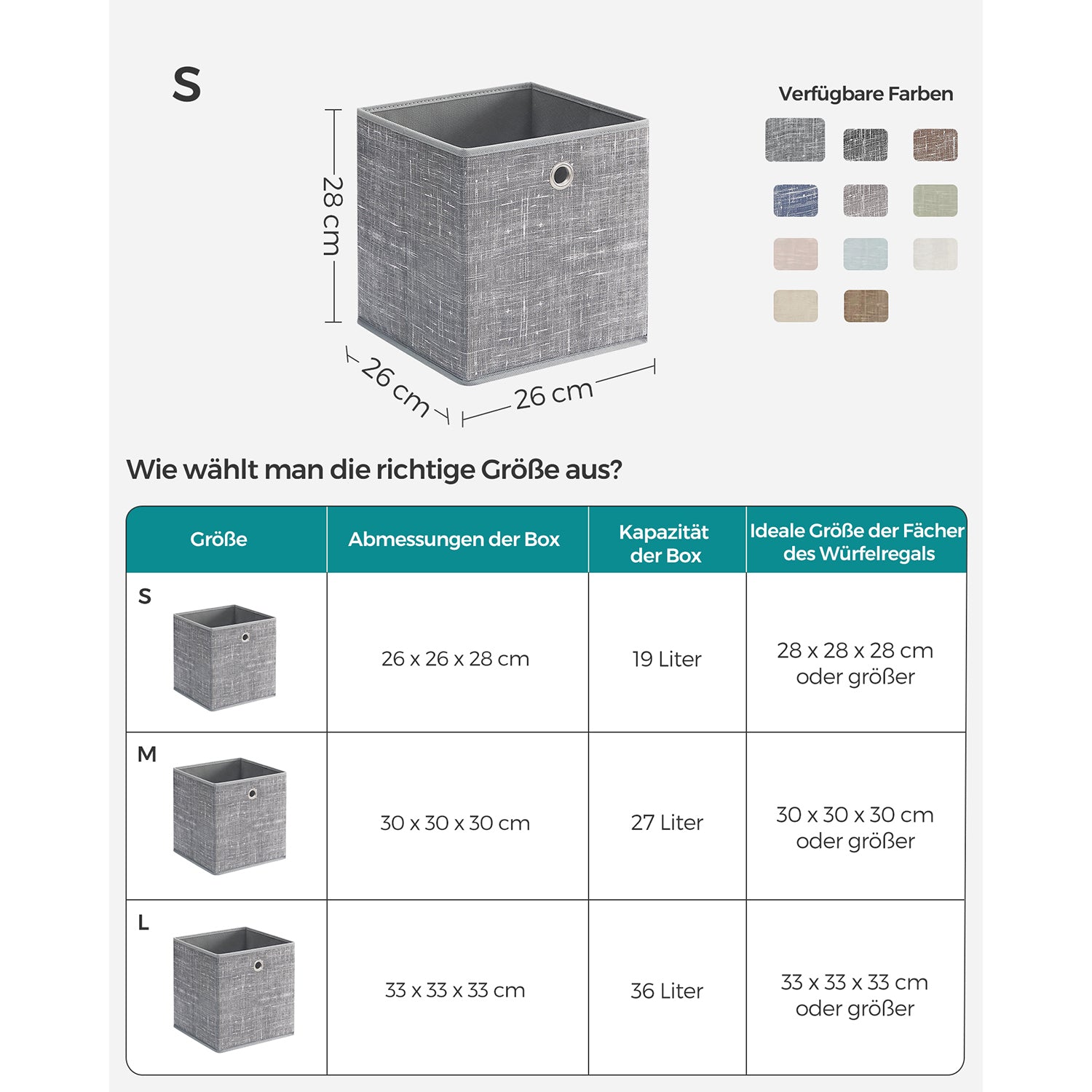 Größe pro Box: 26 x 26 x 28 cm (L x B x H)