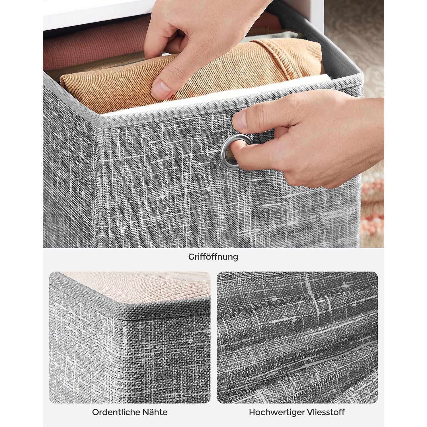 [Robust und stabil] Bewahren Sie Ihre Gegenstände mit diesen 6 Aufbewahrungsboxen ordentlich auf. Jede Box ist mit bis zu 5 kg belastbar und hat eine stabile Konstruktion aus 80 g/m² Vliesstoff und 1,9 mm dickem Karton